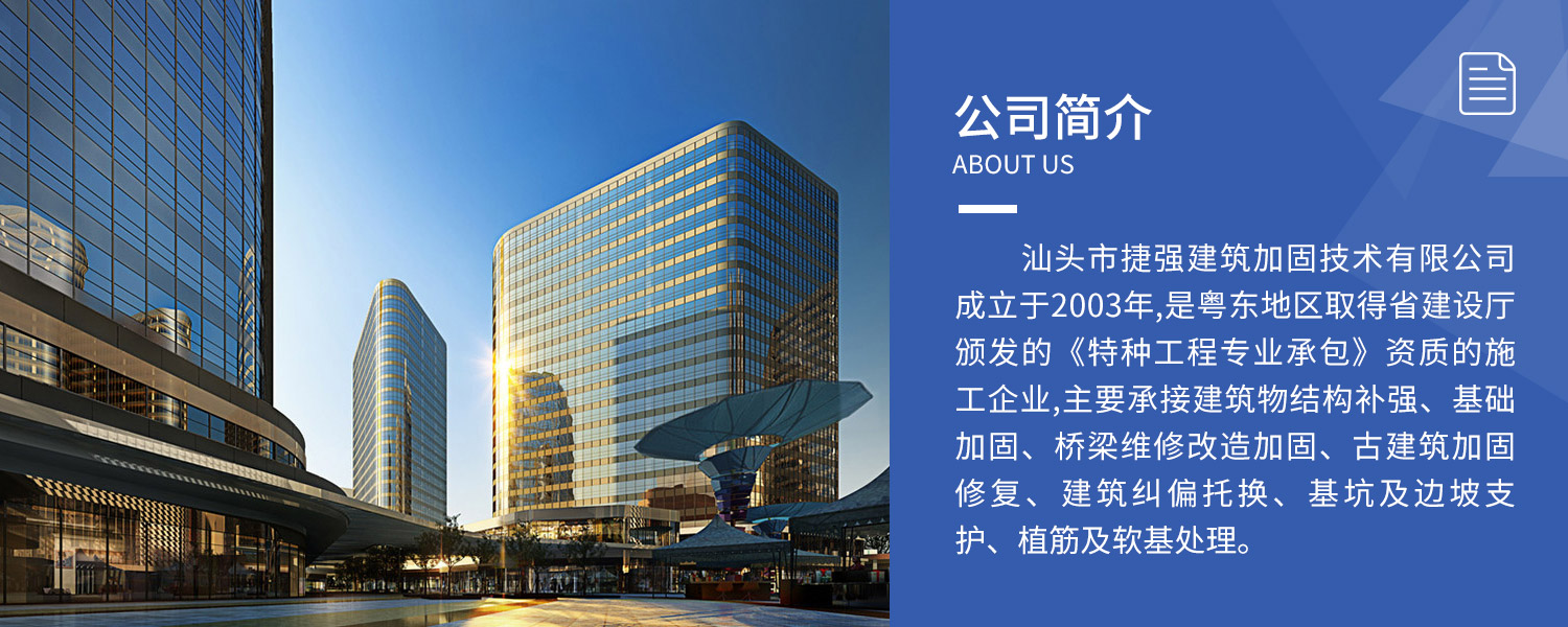 汕頭市捷強建筑加固技術有限公司是粵東地區取得省建設廳頒發的《特種工程專業承包》資質的施工企業。